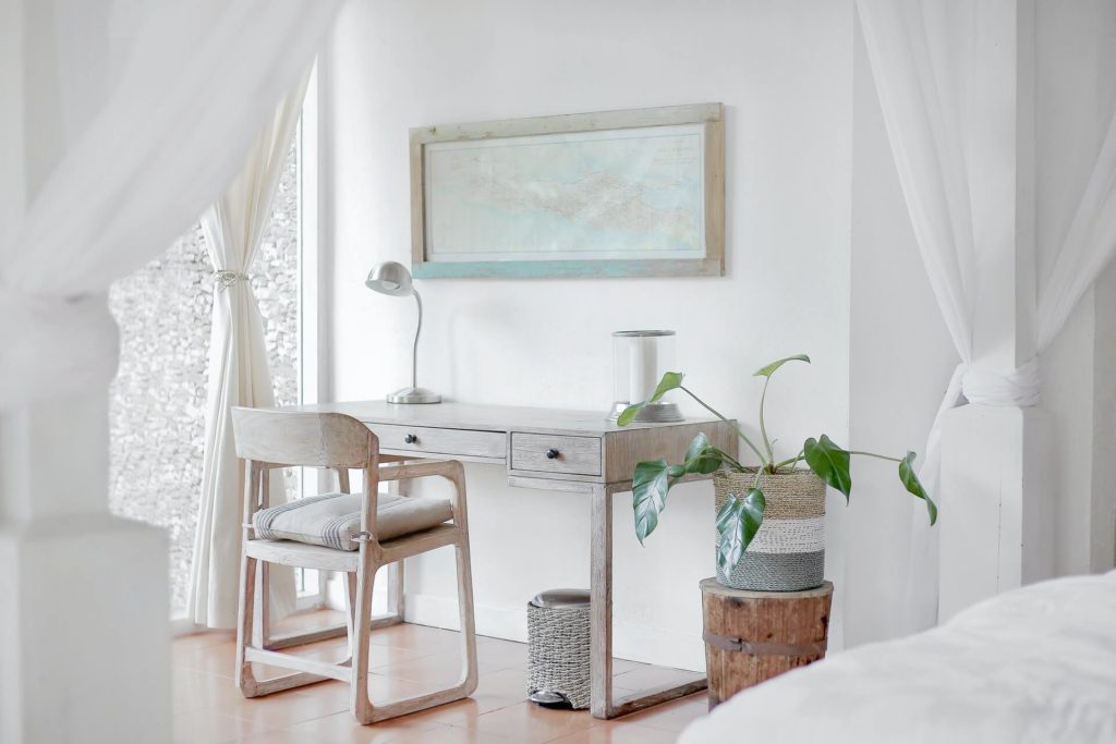 Empty Desk Near Curtain